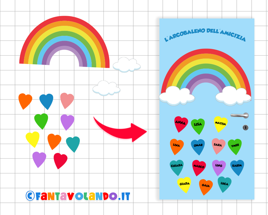 Per l’accoglienza possiamo decorare le porte delle classi. Nel post potete trovare le indicazioni per decorare la porta con l’arcobaleno dell’amicizia.