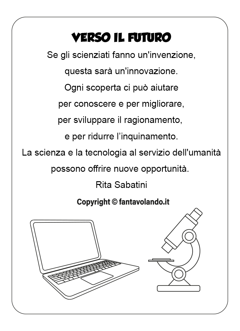 Invitiamo i bambini a riflettere sull’obiettivo 9 dell’Agenda 2030: imprese, innovazione e infrastrutture. Prendendo spunto dalla poesia Verso il futuro di Rita Sabatini (tutti i diritti riservati) chiediamo: