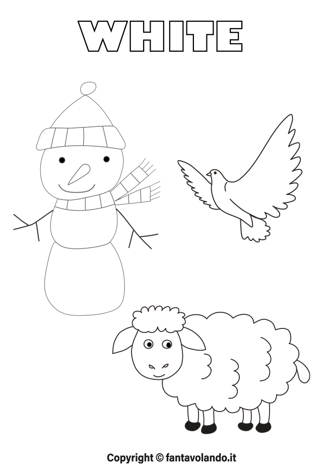 Procediamo come segue: Invitiamo i bambini a colorare le schede e a ripetere i colori in inglese. Le schede si possono unire per formare il libro dei colori, nel post c’è anche la copertina. |