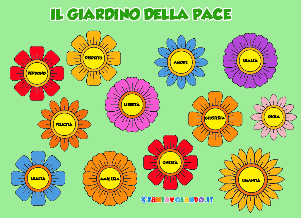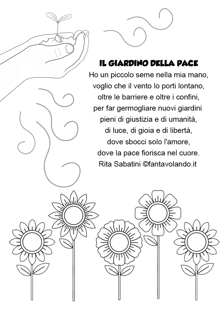 Il 21 settembre è la Giornata internazionale della pace, questa Giornata offre lo spunto per invitare i bambini e le bambine a riflettere sull’importanza della pace. Nel post trovate la poesia Il giardino della pace di Rita Sabatini (tutti i diritti riservati) e il modello dei fiori per realizzare un cartellone.