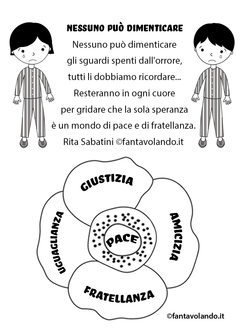 • Invitiamo i bambini a riflettere sul significato del Giorno della Memoria prendendo spunto dalla poesia di Rita Sabatini “Nessuno può dimenticare“.
