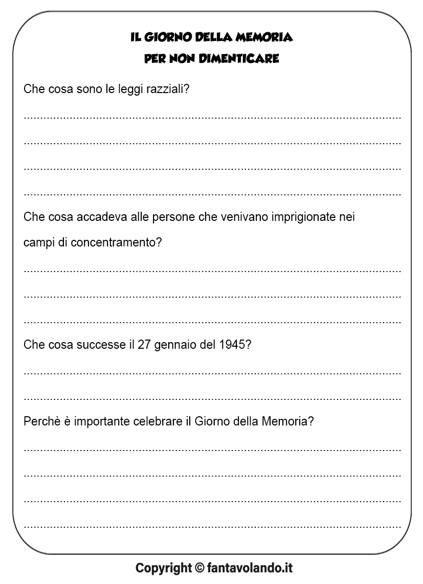 Potete trovare l’indice delle attività relative al Giorno della Memoria disponibili su Fantavolando nel post Giorno della Memoria: attività, schede didattiche, poesie.