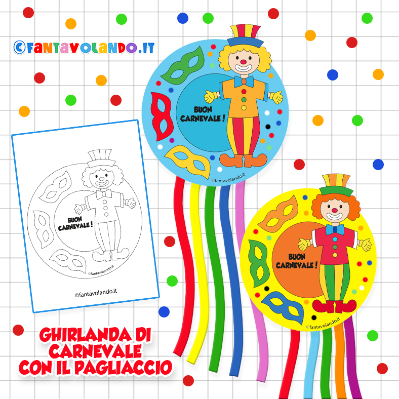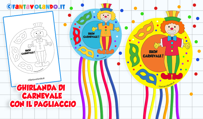 Lavoretti per Carnevale: ghirlanda con il pagliaccio