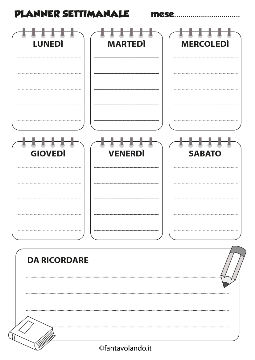Stampate il registro per annotare i compiti assegnati. | Stampate il planner settimanale. |